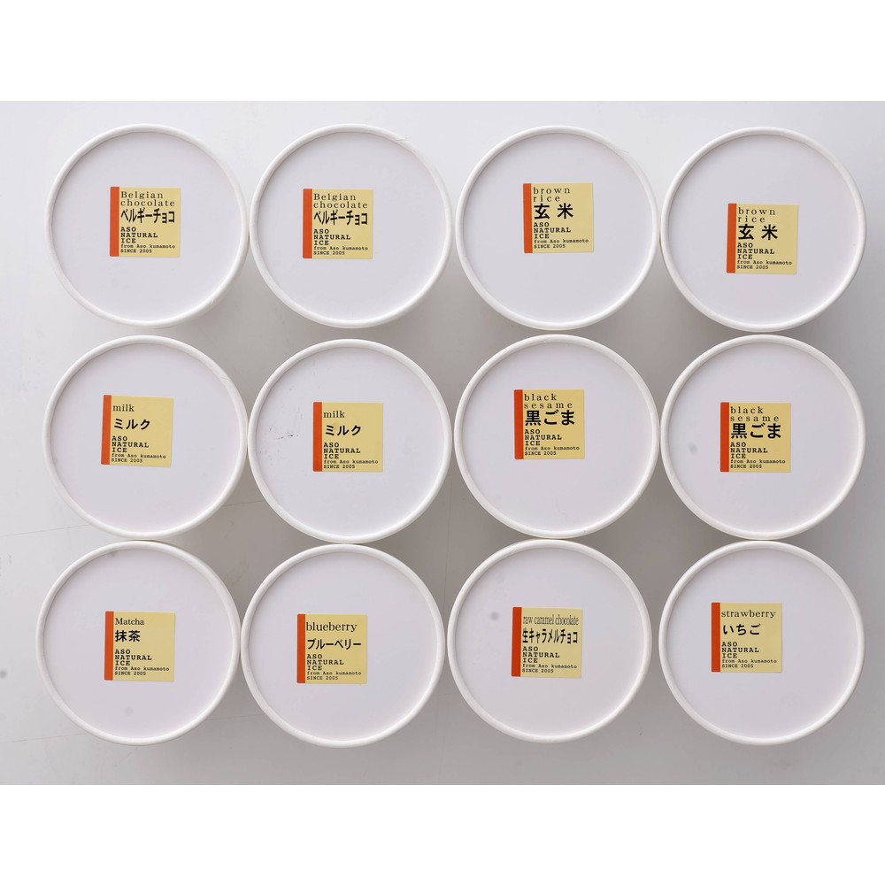 ミルクアイス・玄米アイス・ベルギーチョコアイス・黒ごまアイス各120ml×2個、生キャラメルチョコアイス・ブルーベリーアイス・抹茶アイス・いちごアイス各120ml(計12個)