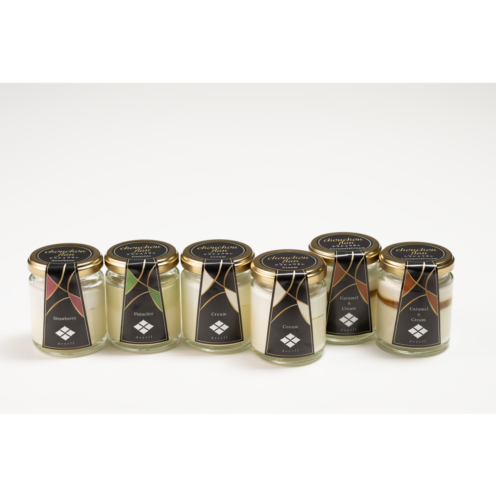 お気に入りのスイーツという意味からchouchou flan(シュシュフラン)と名付けたプリンです。 なめらかな食感、卵のコクとミルクのやさしい甘さにこだわったプリンに4種類のクリームをトッピングしたパティシエ渾身の自信作です。夕暮れの帰り道、お気に入りのスイーツが待っているしあわせな時間をプリンとともにお届けします。