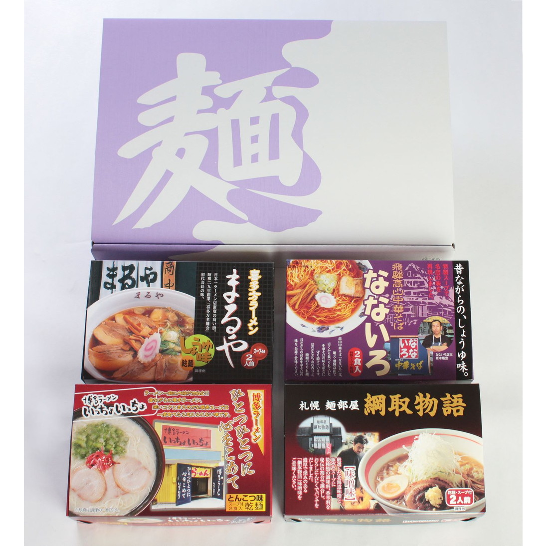 札幌綱取物語味噌・喜多方まるや醤油・飛騨高山なないろ醤油・博多いっちょいっちょ豚骨各80g×2袋(計8食)