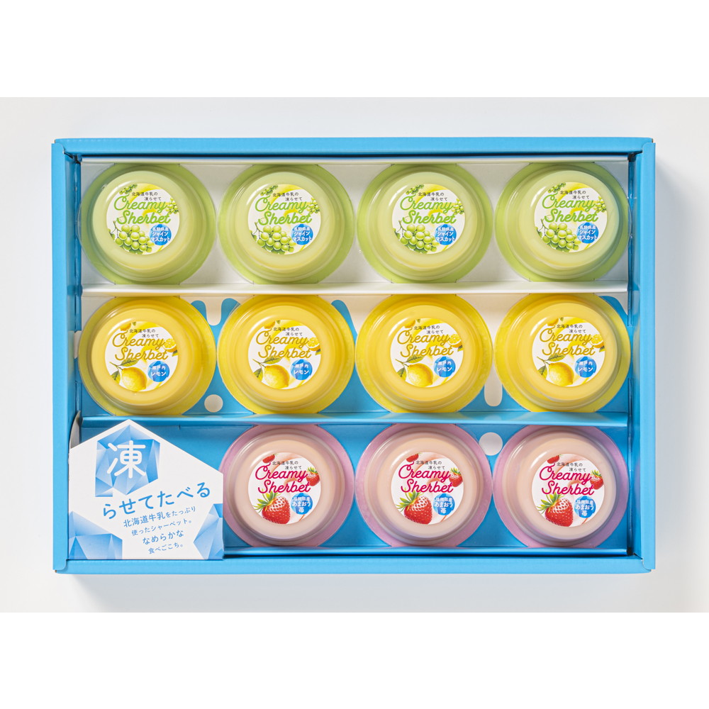 北海道産牛乳をたっぷり使った、なめらか食感のシャーベットです。